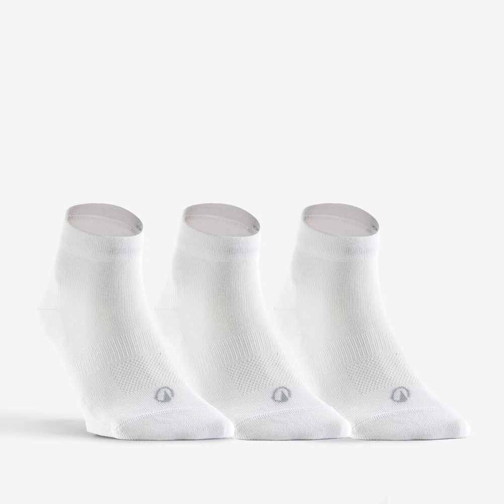 Ces chaussettes de sport mi-hautes en coton assurent maintien et résistance pour débuter le tennis. Leur conception limite les irritations pendant la pratique des sports de raquette. Lot de 3