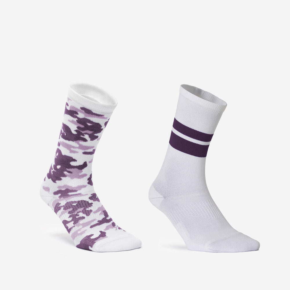 Chaussettes mi-hautes de fitness x2, blanches et noires