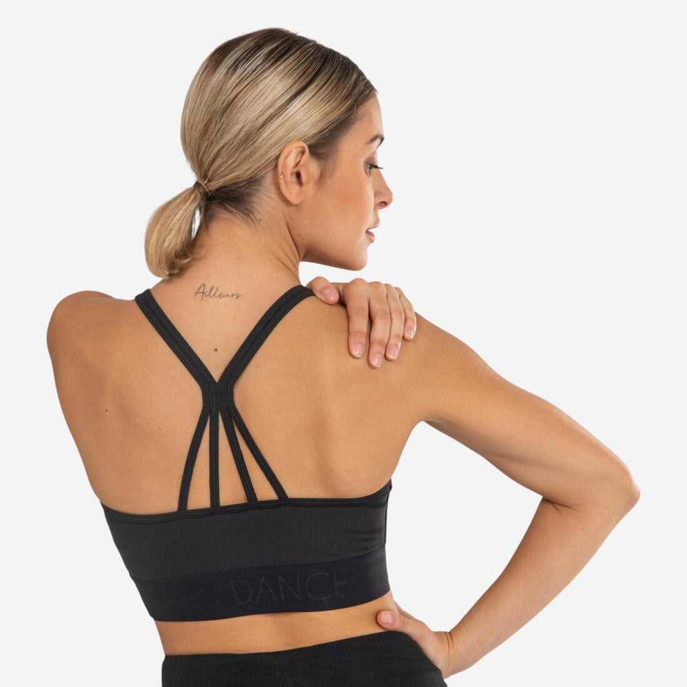 Différents styles s'offrent à vous si vous optez pour cette brassière de danse moderne. Portée seule, vous pouvez laisser libre cours à vos mouvements en laissant apparaître les bretelles et l'élastique en relief. Associez-là à un débardeur pour couvrir les bretelles et créer un dos élégant.