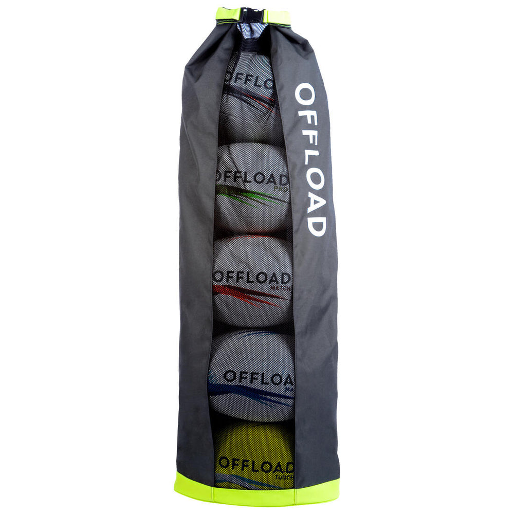 Nous avons conçu ce sac à ballons pour ranger et transporter facilement jusqu'à 5 ballons de rugby de taille 5.