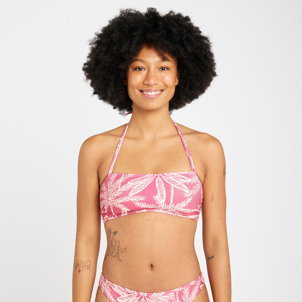 Un haut de maillot de bain bandeau au design minimaliste idéal pour les surfeuses cherchant style et praticité dans de petites conditions.