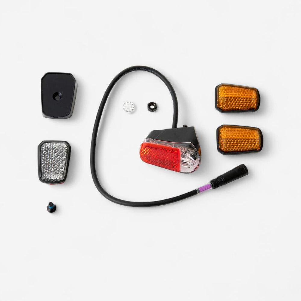 Pensez aux pièces détachées ! Afin d'entretenir votre trottinette et de continuer à profiter de celle-ci, ce kit comprend: 2 catadioptres, leurs adhésifs, une lampe arrière, son faisceau électrique et ses vis de fixation.
