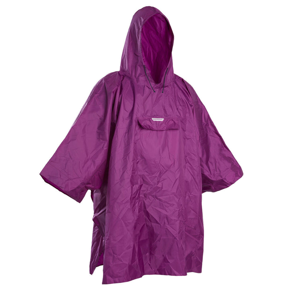Grâce à sa couple ample, ce poncho vous permet de le porter par dessus votre veste ou votre pull, ainsi que par dessus un petit sac à dos de 20 litres notamment. Sa surface vous couvre de la tête aux cuisses, et les cordons de serrage vous permettent de l'ajuster à votre tête. Lorsque la pluie cesse, vous n'avez qu'à ranger ce poncho dans la poche centrale de ce dernier. Voici les dimensions de cette poche : 23,5 cm X 20 CM