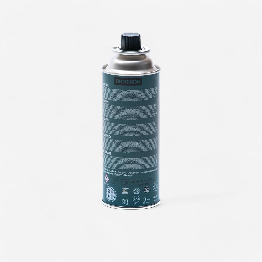 Cartouche de gaz butane 220g à baïonnette + valve, pour alimenter votre réchaud lors de vos séjours en camping. Compatible avec les réchauds Decathlon Quechua.