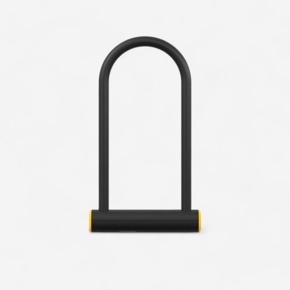 Anse de section tubulaire en acier cémenté, ce qui lui confère une résistance supérieure. Résistance au coupe-boulon, à la scie et au marteau. Revêtement "rubber" (gaine souple) qui limite les claquements et évite de rayer le cadre du vélo. Taille intérieure la plus longue de la anse : 27,3 cm (suffisant pour attacher un vélo électrique avec batterie intégré ou deux vélos).