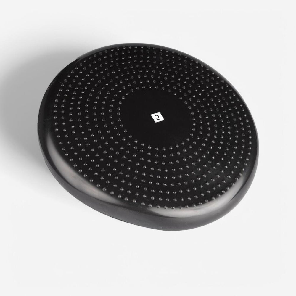 Première règle : ne jamais sentir le sol sous vos pieds. Si c'est le cas, gonflez avec une pompe à aiguille (réf : 8556016, vendue séparément). Le secret est dans la pression d'air : plus votre disque est gonflé, moins vous travaillez votre équilibre. Et moins il est gonflé, plus vous sollicitez votre équilibre. Commencez fort puis dégonflez progressivement pour intensifier le défi. Ainsi, votre coussin évolue avec vous, rendant chaque séance unique et toujours plus stimulante !