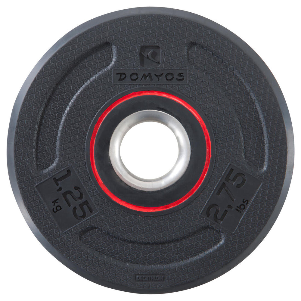 Disque musculation en caoutchouc 1,25kg 28mm, composé à 80 % de fonte recyclée