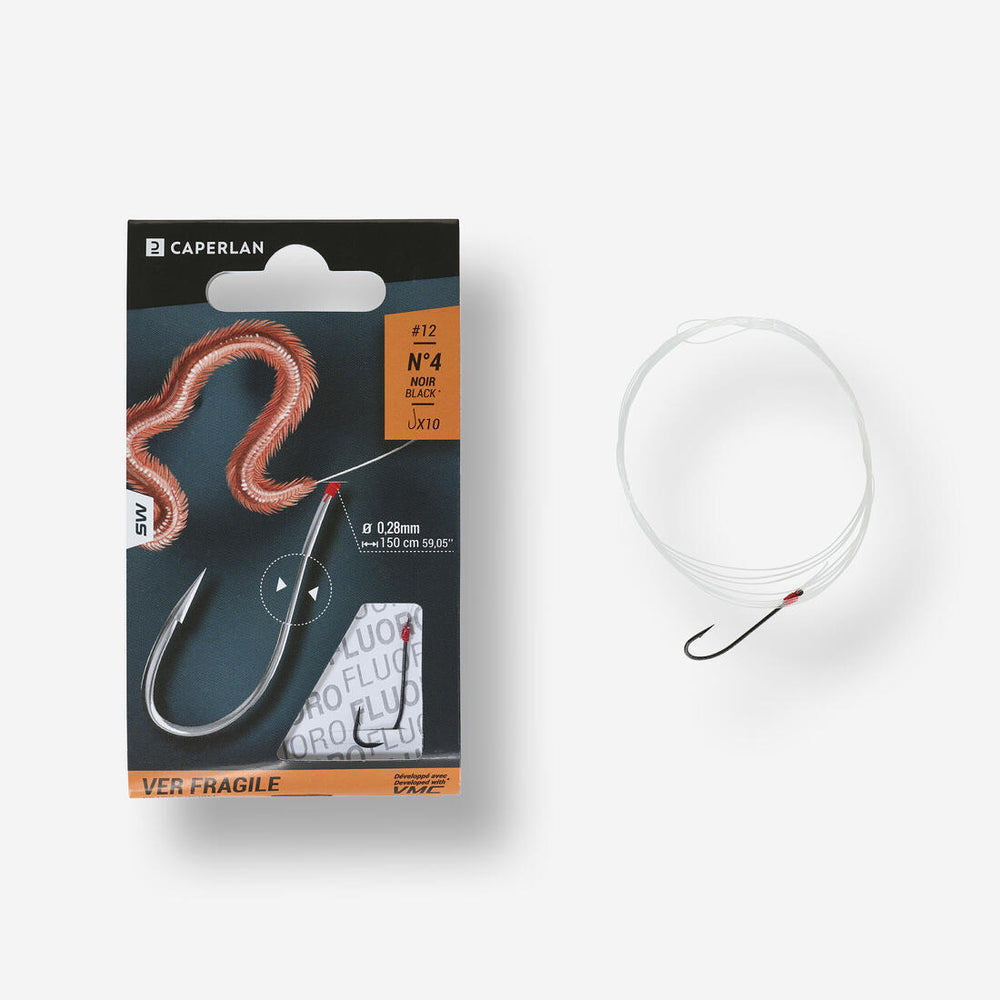 10 hameçons montés pour escher un ver fragile - Chaque hameçon est monté avec une empile de 150 cm de fluorocarbone