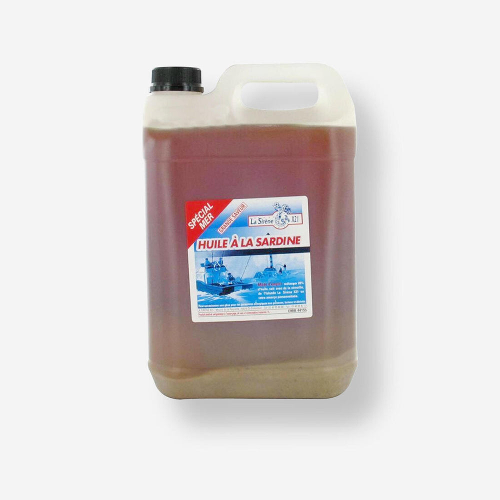 Huile de sardine enrichie en particules de sardines, destinée à la réalisation d'amorce. Son pouvoir olfactif en fait un allié de poids pour attirer les poissons sur un poste précis.