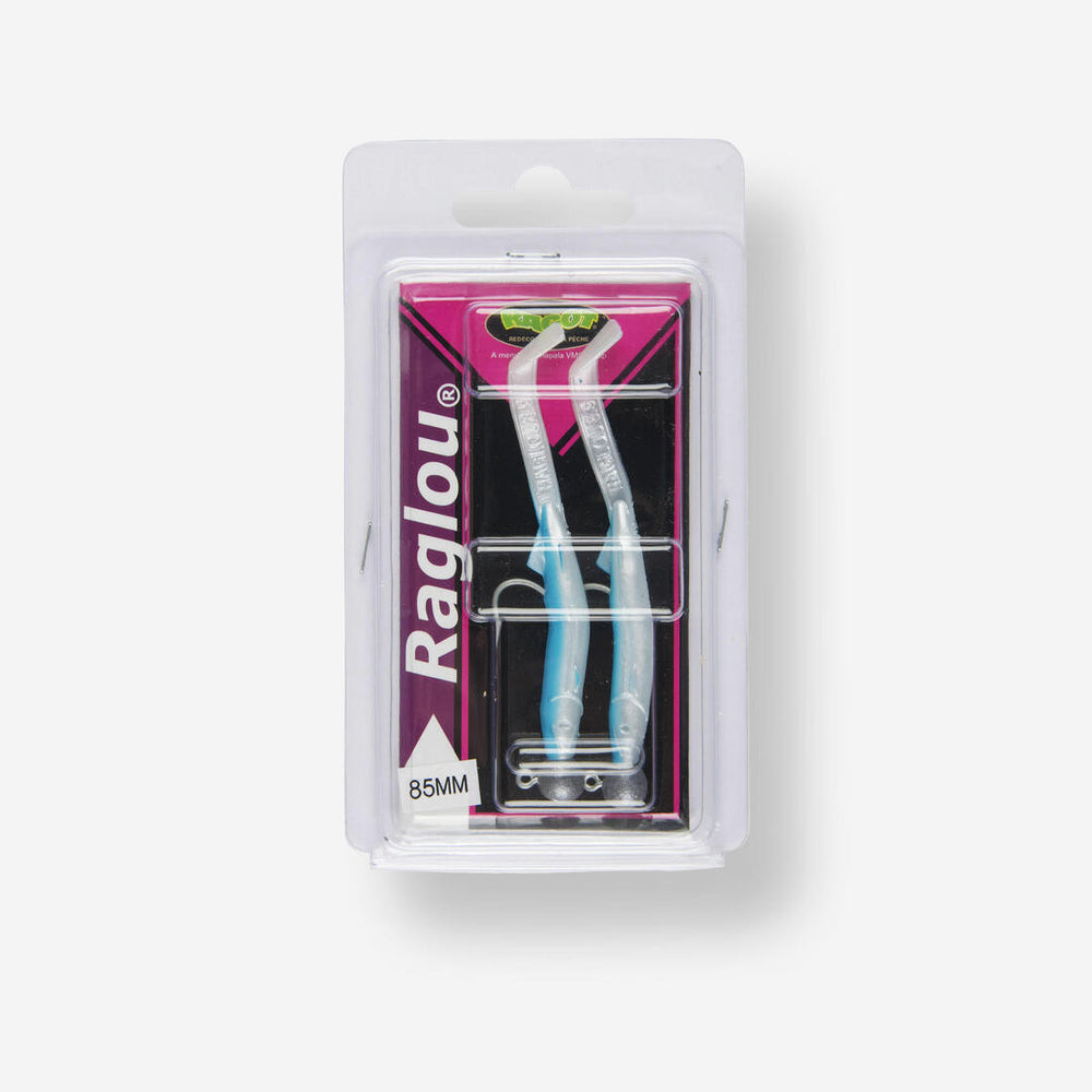 Leurre souple destiné à une utilisation en traîne ou au lancer, qui imite la forme d'un lançon ou d'un alevin. L'hameçon évite les vrillages et procure au Raglou une nage rectiligne et vibrante.