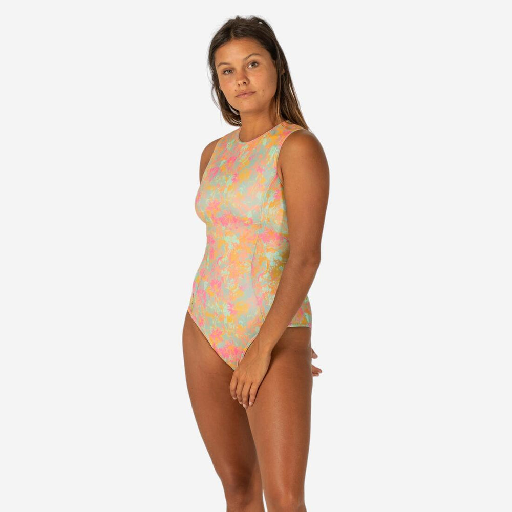 Ce 1 pièce femme totalement couvrant avec back zip a été imaginé pour les surfeuses afin de limiter les frottements contre la planche et la wax et de libérer leurs épaules à la rame.
