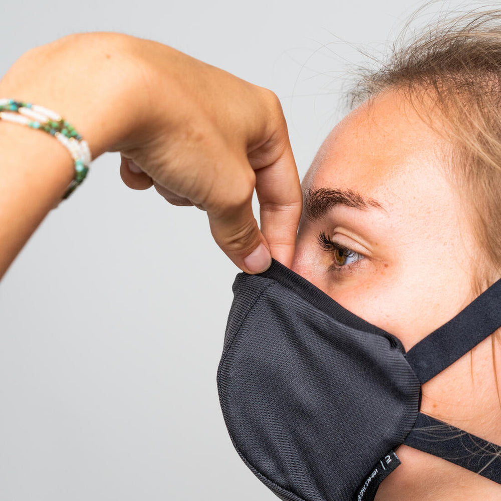 Vous marchez, courez, sautez, tirez, grimpez... votre rythme cardiaque et respiratoire s'accélère ! Avec ces sensations, vous expulsez plus de particules que d'habitude, ces projections sont plus intenses et votre transpiration peut affecter les capacités d'un masque classique. Pour protéger votre entourage de ces projections pendant le sport, la fibre en polyesther sélectionnée filtre plus de 90% des particules que vous expulsez , tout en évacuant la transpiration."