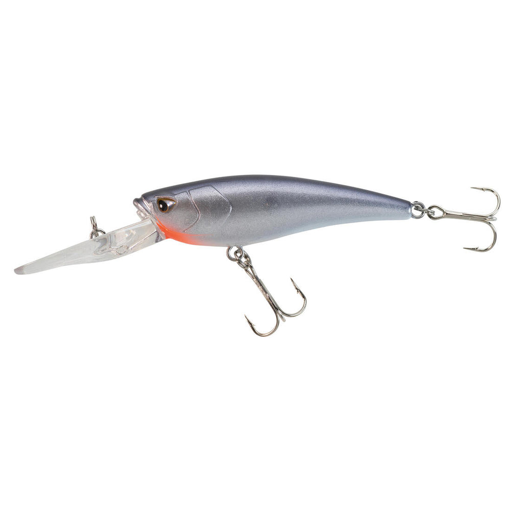 Taille : 6 centimètres Poids : 6,8 grammes Profondeur de nage : 2 mètres Densité : Flottant (plonge à la traction, flotte à l'arrêt). Bruiteur : Oui Hameçons : n°8 nickel Type d'équilibrage : acier Corps : ABS